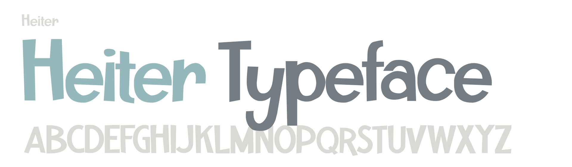 The Heiter font (meaning cheerful) is a hand drawn sans serif font with a classic 1950’s feel. Fun, jaunty and quirky in its hand drawn uneven feel, it is a versatile font with lots of uses.